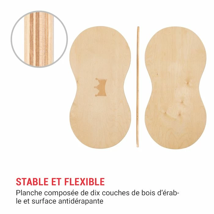 - Stable et flexible : planche composée de dix couches de bois d’érable avec une surface antidérapante