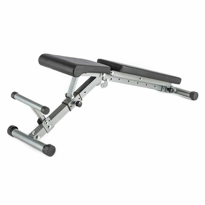 - Banc de musculation entièrement pliable avec assise et dossier réglables pour 21 positions d’exercices différentes