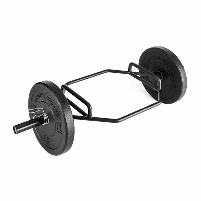 Les deadlifts sont le test ultime de musculation du haut du corps, mais l’exercice est violent pour le bas du dos. La parfaite alternative au lever de poids classique avec la barre longue vous est proposée par la Hex-Bar CAPITAL SPORTS Beastbar. Car contrairement à l’entraînement avec la barre longue, ici, avec la barre hexagonale, le centre de gravité se situe à hauteur de la hanche. Le poids est soulevé sur les côtés du corps, ce qui exerce moins de pression sur le bas du dos. Avantage d’un rayon de déplacement modifié : vous pouvez charger plus de poids.