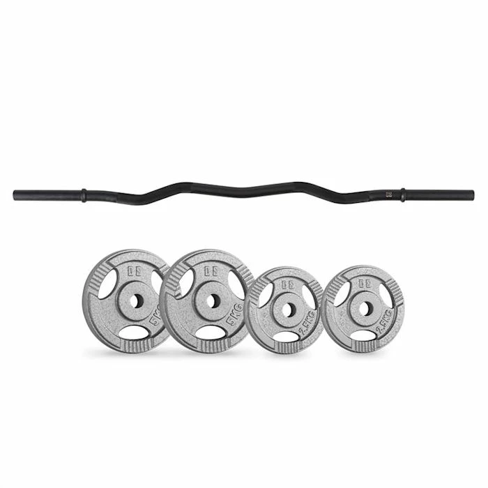 Soulève ! Le set barre de curl/disques de poids CAPITAL SPORTS 15 kg va te permettre d’effectuer une musculation optimale de chez toi : avec la barre de curl Accretor de CAPITAL SPORTS, les muscles de tes bras seront en pleine forme : l’haltère de 120 cm de long, en acier solide oxydé noir, t’apporte une accroche solide lors de l’entraînement grâce à ses poignées ourlées. Ses manchons de 18 cm peuvent être équipés de disques de poids avec une admission de 30 mm, ceci jusqu’à 180 kg. Avec les fermetures à ressorts assorties, le changement de poids est fait en un tour de main.