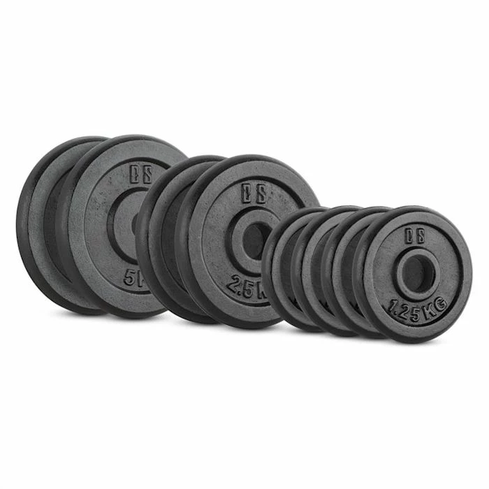 Lift it! Le set de disques de poids CAPITAL SPORTS IPB 20 kg vous permet un entraînement de force optimal à la maison. Les disques d’haltères avec une ouverture de 30 mm s’adaptent aussi bien sur des haltères longs que courts et apportent des poids de 4 x 1,25 kg, 2 x 2,5 kg et 2 x 5 kg sur votre barre d’haltère. Les disques en fonte d’acier arrondis sont thermo-laqués en noir, le poids est facilement reconnaissable car il est gravé sur l’avant et sur l’arrière.