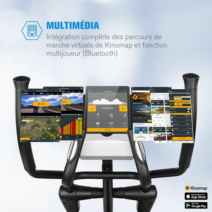 - Multimédia : intégration complète des parcours de marche virtuels et fonction multi-joueurs (Bluetooth)