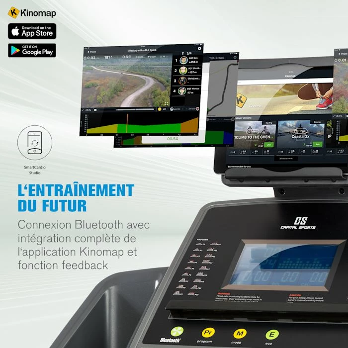 - L’entraînement du futur : connexion Bluetooth avec intégration complète de Kinomap et fonction feedback