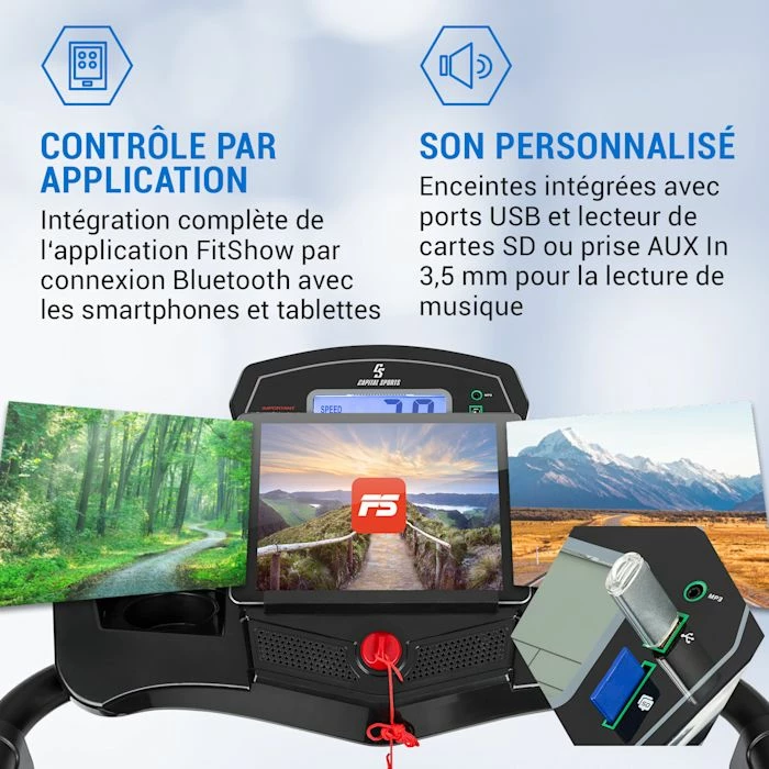 particulièrement doux et sans entretien du tapis de course - Contrôle via l’appli : intégration complète de iFit-App via connexion Bluetooth avec