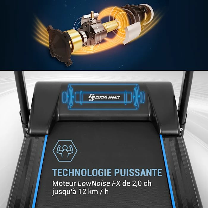 Faites bouger votre corps : avec le tapis de course Capital Sports Treado sport 2.0, faites du sport sans quitter votre domicile. Son moteur puissant de 2 ch à courant continu