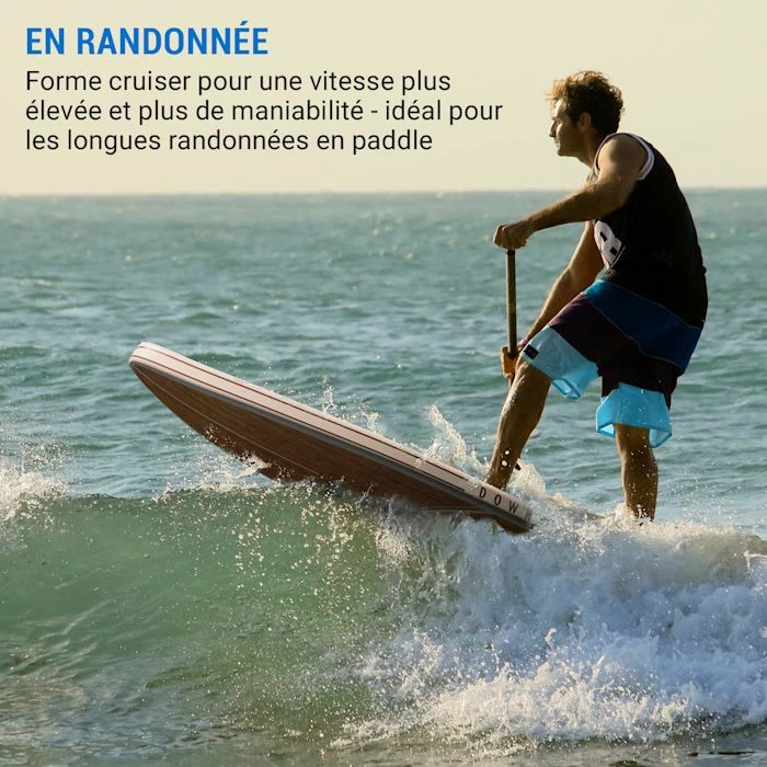 - En randonnée : Cruiser Shape pour une plus grande vitesse et plus d’agilité – idéal pour les longues randonnées en paddle.