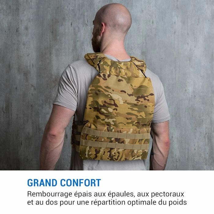 La bataille pour la puissance ! Le gilet de musculation Capital Sports Battlevest 2.0 conduit vos muscles et votre endurance à de nouvelles performances de pointe. Le modèle d’origine a été développé par l’armée comme gilet pare-balles et combine des capacités de charge extrêmes pour les plaques blindées et de poids ainsi qu’une adaptation parfaite au corps pour une mobilité maximale et un handicap minimal. Des bandes élastiques en caoutchouc, un rembourrage épais aux épaules, au torse et au dos ainsi que de nombreuses options de réglage par bande autoagrippante assurent un confort maximal. Le développement du gilet a pris en compte la perméabilité à l’air extrêmement élevée des matériaux pour un port confortable pendant des heures lors des opérations militaires – une différence que vous ressentirez en transpirant à l’entraînement. Le mécanisme Quick-Release permet de retirer le gilet rapidement pour changer d’exercice ou en cas d’urgence médicale. En tirant sur le câble spécialement fourni, toute la charge est libérée en un rien de temps et tombe de votre gilet.