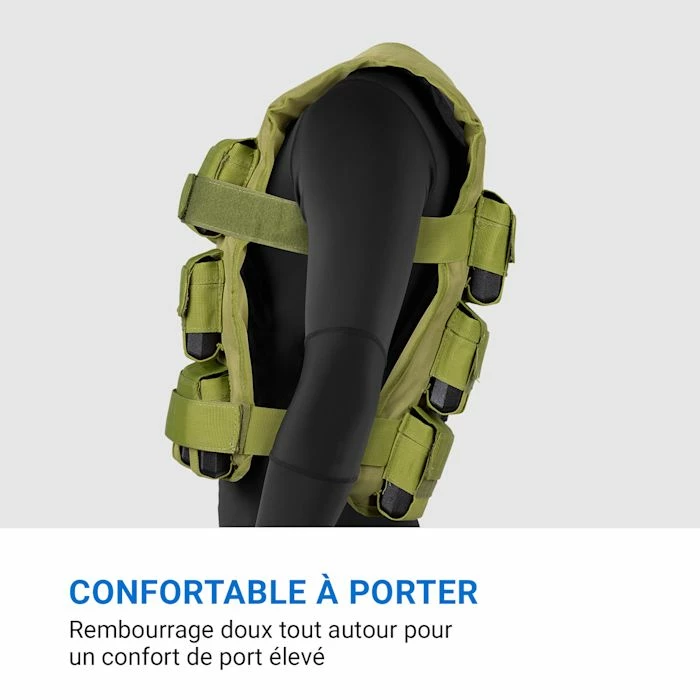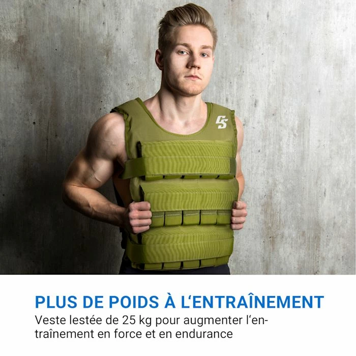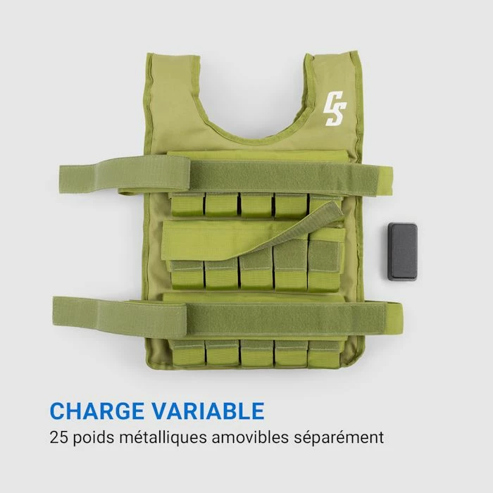 - Plus de charge pendant l’entraînement : veste permettant de porter 30 kg supplémentaires pendant l’entraînement en force et en endurance