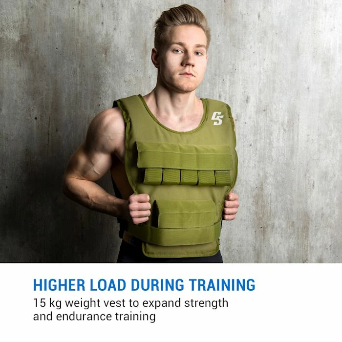 - Plus de charge pendant l’entraînement : veste permettant de porter 15 kg supplémentaires pendant l’entraînement en force et en endurance