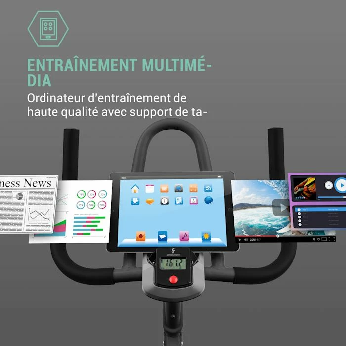 - L’entraînement multimédia : ordinateur d’entraînement de haute qualité avec support de tablette intégré