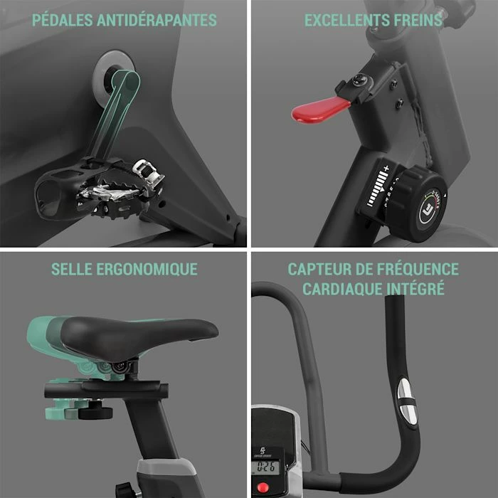 - Détails de grande qualité : capteur de fréquence cardiaque intégré, pédales antidérapantes et selle ergonomique