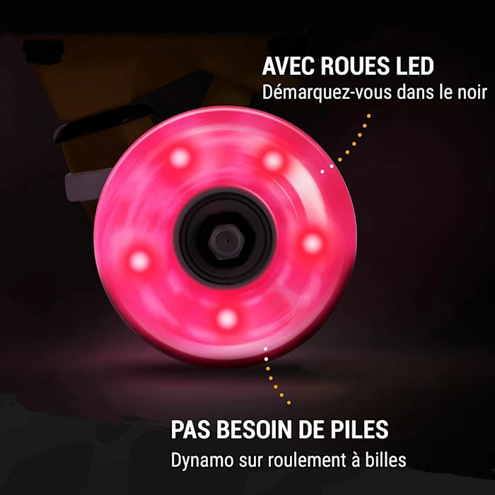 - Roues avec dynamos magnétiques et lumière LED scintillante