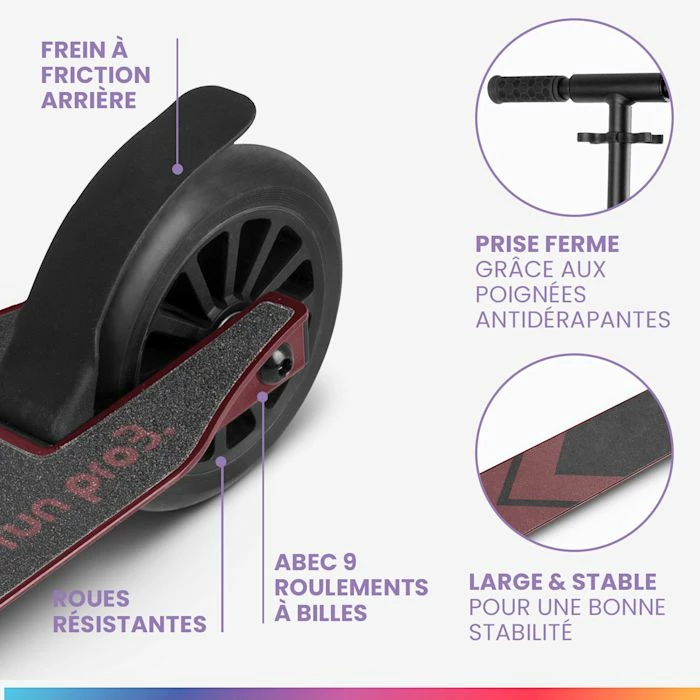 - Sûr & stable : avec frein à friction sur la roue arrière et béquille dépliable