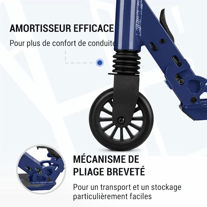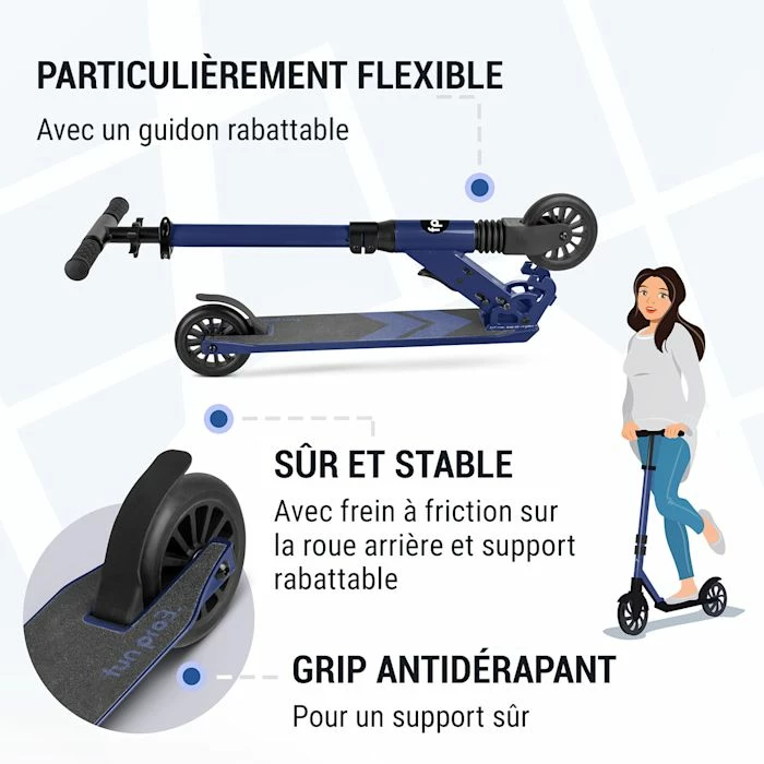 - Sûr & stable : avec frein à friction sur la roue arrière et béquille dépliable