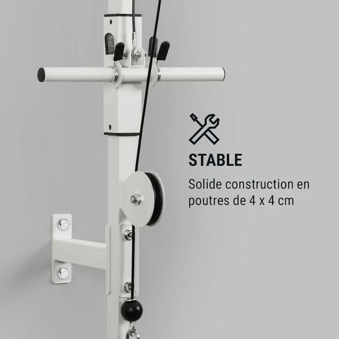 - Peu encombrant : station de traction se montant simplement au mur, à seulement 20 cm de distance