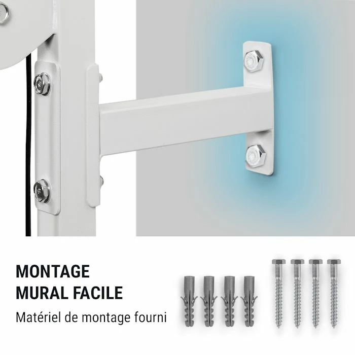 - Résistant : deux supports de poids de 14 x 2,5 cm (LxØ) pour des charges maximales de 100 kg