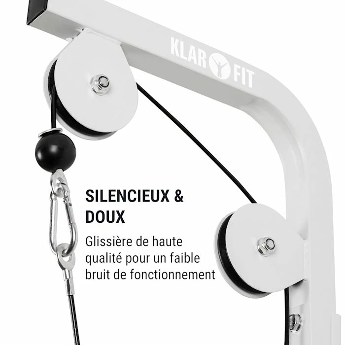- Entraînement varié : câble de traction en deux éléments pour travailler l’abdomen, le dos et les bras en traction inférieure ou supérieure