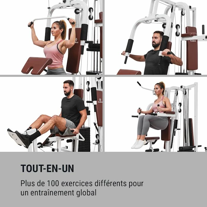 - MultiGym Concept : 7 stations de musculation pour exercer tous les groupes musculaires