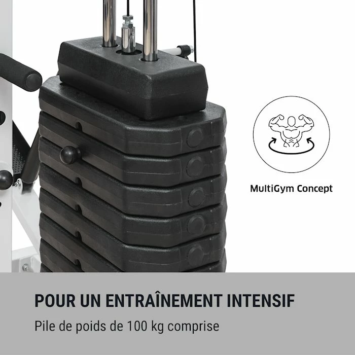 - Pour un entraînement intensif : pile de poids de 100 kg incluse