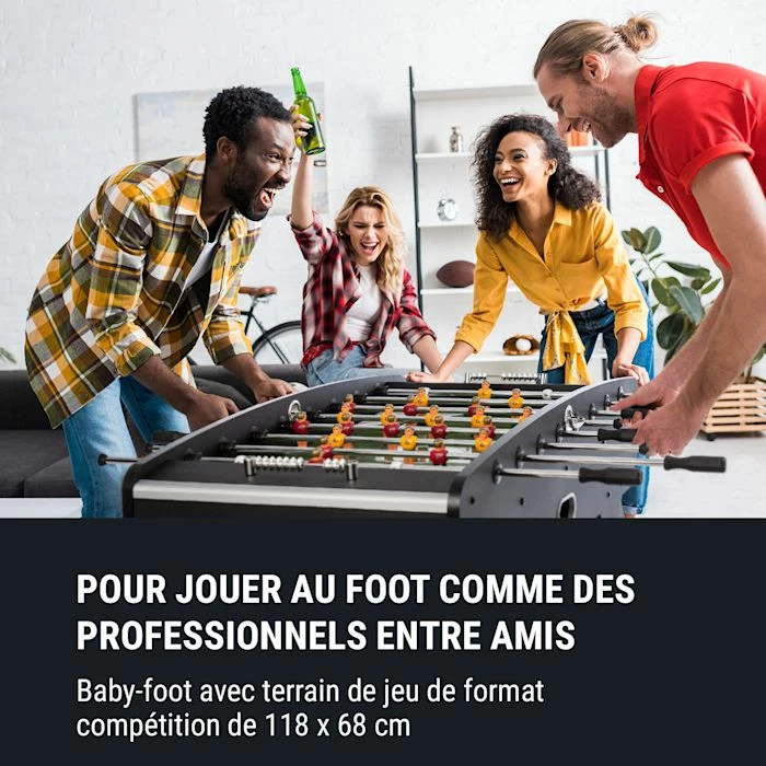 - Jouez entre amis: Baby-foot avec une superficie de jeu aux dimensions officielles 118 x 68 cm