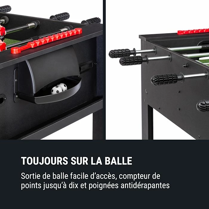 - Fonction rotative de 180° : Table de jeux 2-en-1 – Billard et kicker combinés