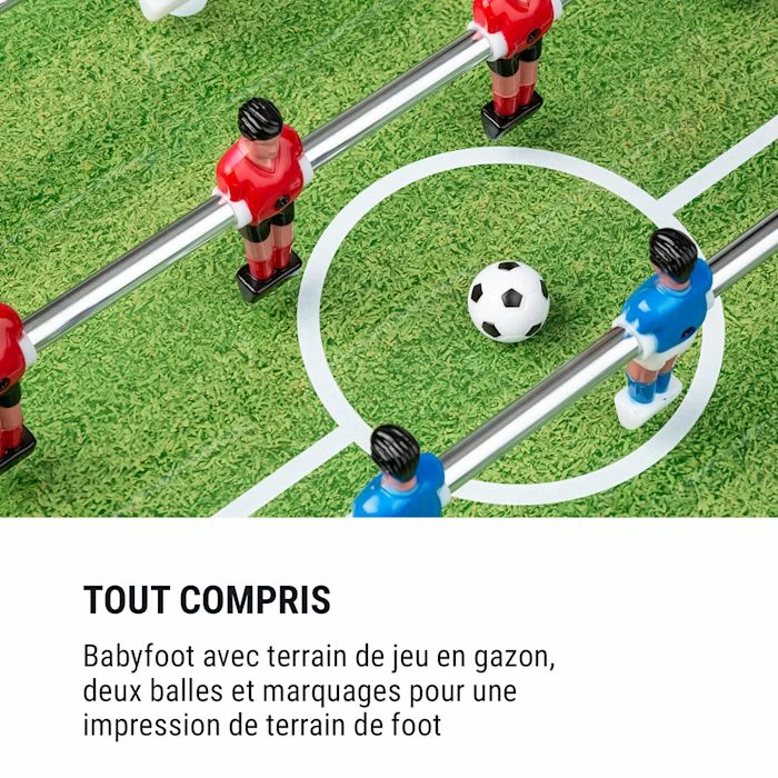 Que le jeu commence! Klarfit Spin transforme votre salle de séjours, chambre d’enfant ou salle de fête en véritable salle de billard ou en terrain de football, amusement garanti! Que vous soyez seul, en famille ou avec des amis, divertissez-vous lors d’une bonne partie de billard ou lancez-vous dans une folle partie de kicker. Grâce à sa fonction rotative à 180°, le kicker se transforme en un simple tour de main en une table de billard et vice-versa.