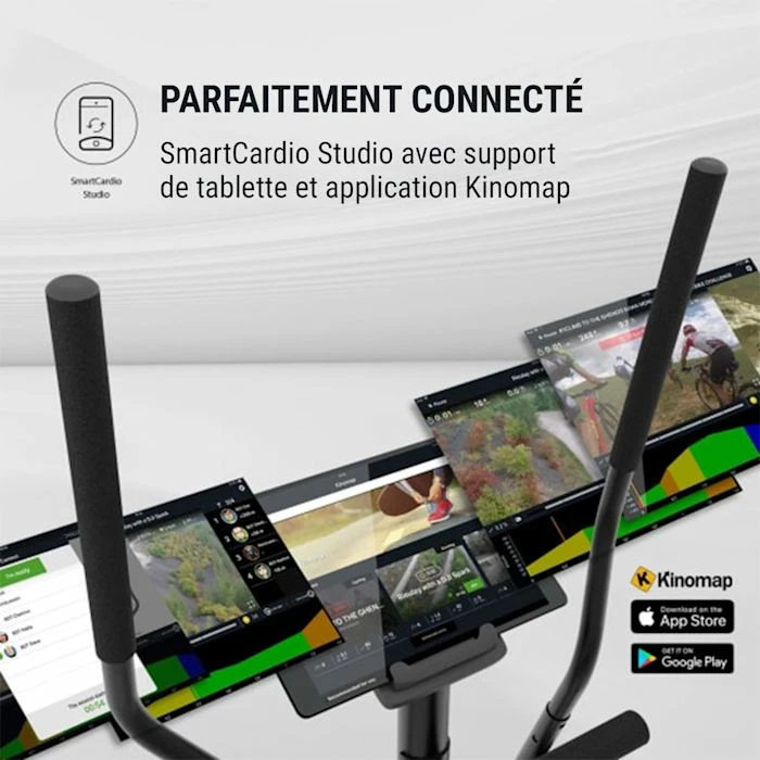 - Parfaitement connecté : SmartCardio Studio avec support de tablette et application Kinomap