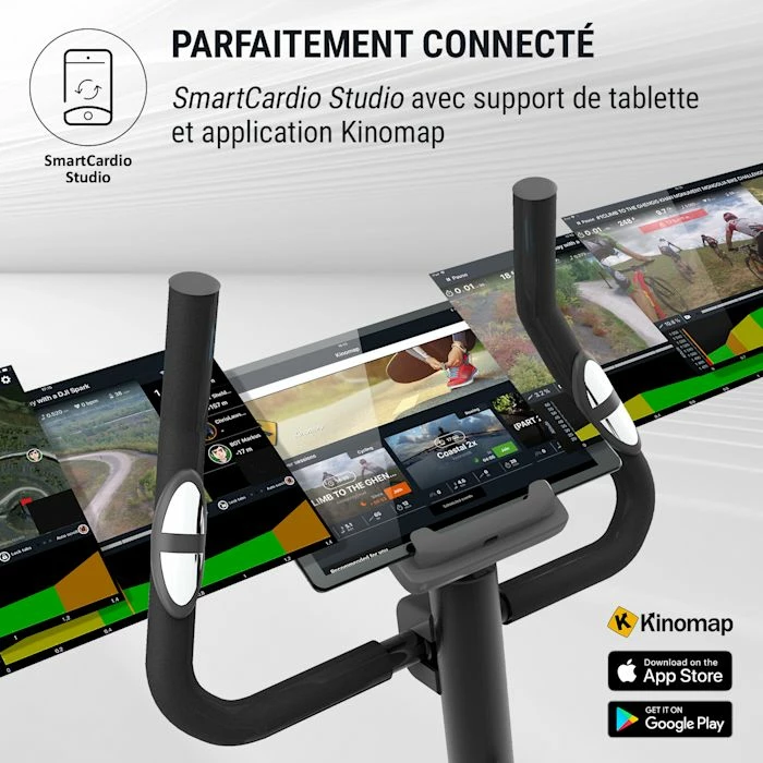 - Parfaitement connecté : SmartCardio Studio avec support de tablette et application Kinomap