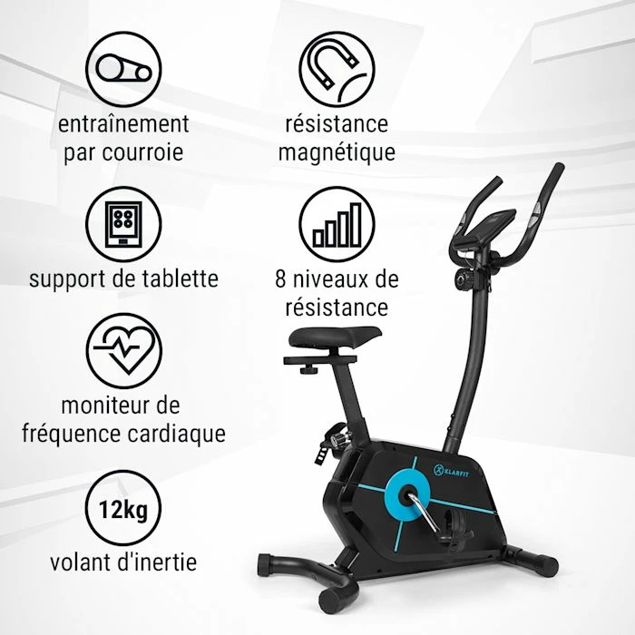 Avec le vélo d’appartement Klarfit Tauon, vous êtes parfaitement équipé pour votre entraînement personnel à domicile. Faites travailler vos muscles et votre système cardiovasculaire et entraînez-vous à domicile quelle que soit la météo.