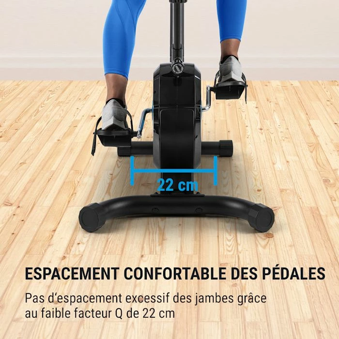 - Espacement agréable des pédales : pas d’écartement excessif des jambes grâce au faible facteur Q de 22 cm