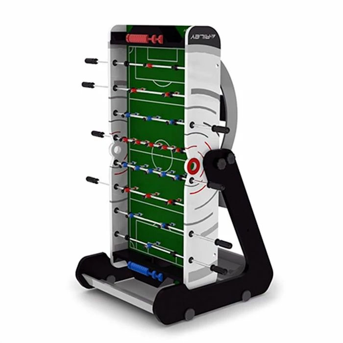 Après le dernier coup de sifflet, le Babyfoot de Riley se range très facilement grâce à son système intelligent de pliage qui lui fait prendre de petites dimensions pour attendre discrètement la prochaine partie.