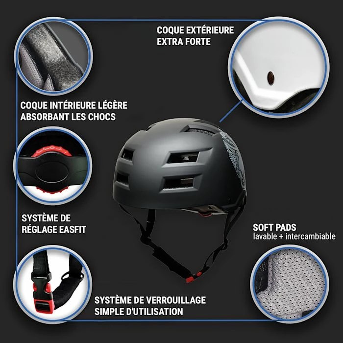 • Robuste : Coque extérieure Microshell en polycarbonate et coque intérieure EPS absorbant les chocs