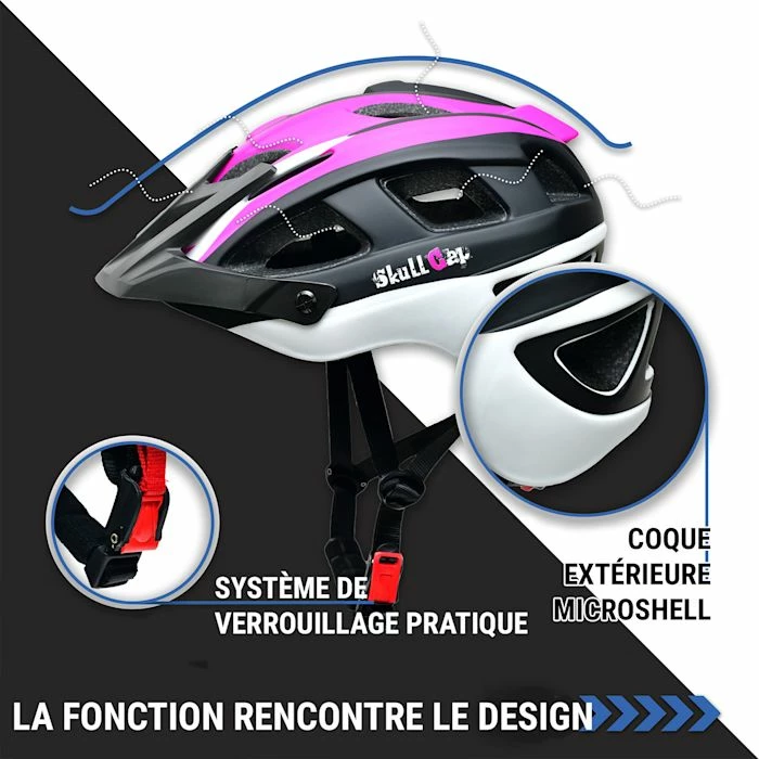 Pour un trek alpin ou une piste cyclable, l’alliance de la légèreté, du confort et du style fait du casque de vélo Skullcap by Capital Sports le compagnon idéal pour chaque utilisation. Le matériau intérieur souple en polystyrène expansé anti choc s’intègre parfaitement à la coque extérieure extra-résistante en polycarbonate. Grâce à la molette de réglage en continu EASfit, adaptez votre casque de manière optimale à votre tour de tête. Les coussinets intérieurs remplaçables et lavables s’adaptent parfaitement pour un confort maximal. Son poids léger et ses 14 fentes d’aération vous permettent de toujours garder la tête froide. Grâce au système de fermeture facile à utiliser, l’ouverture et la fermeture sont un jeu d’enfant.
